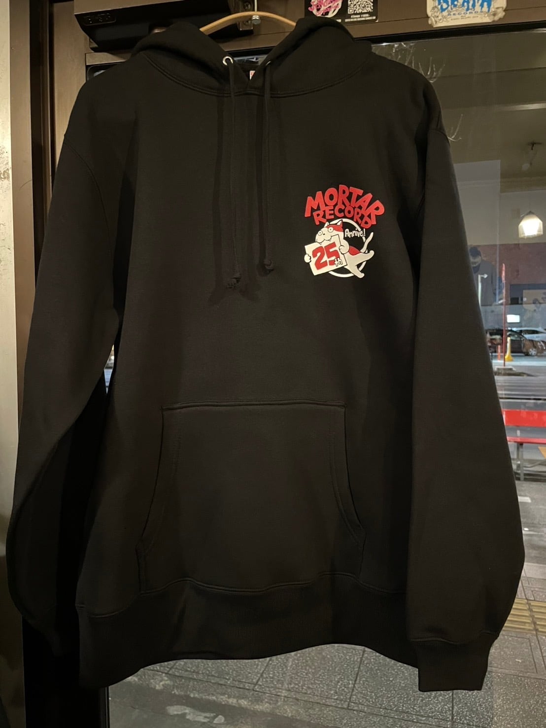 モルタルレコード25周年アニバーサリーを記念したジップパーカーのプルオーバーバージョンを現mん体で作りました!